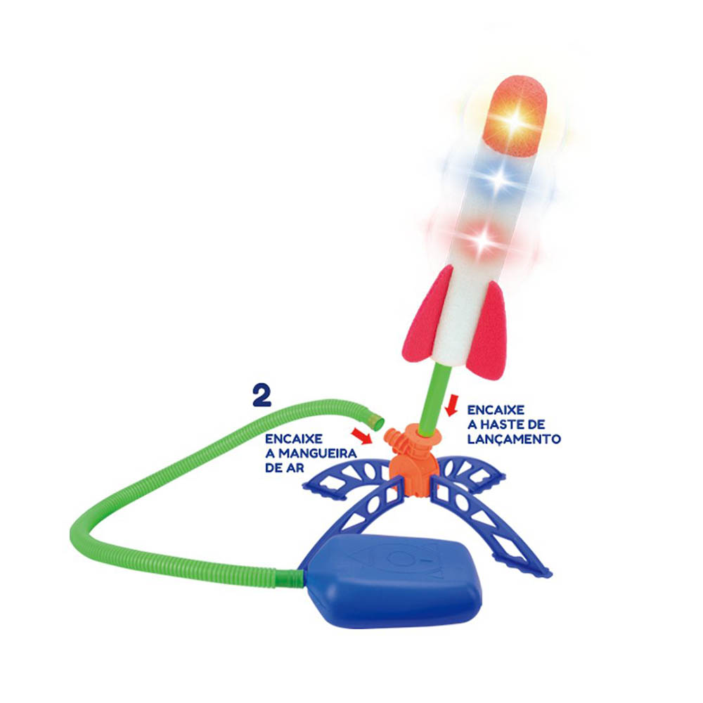 KIT INFANTIL LANÇADOR DE FOGUETE EM ESPUMA 28 CM COM PEDAL DE AR SHINY TOYS
